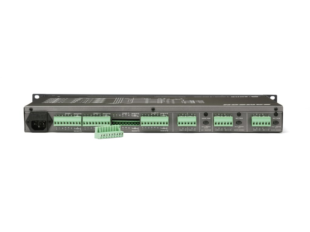 Mikrofonní vstupy lze nastavit tak, aby „potlačily“ zónové vstupy, takže při oznámení se automaticky ztlumí hudba na pozadí. Na každém z výstupů S-Zone najdete praktický dvoupásmový ekvalizér, který vám umožní nastavit celkovou tonální odezvu každé zóny. Na všech výstupech je šestisegmentový LED bar VU měřič, který poskytuje vizuální zobrazení úrovně každé zóny.